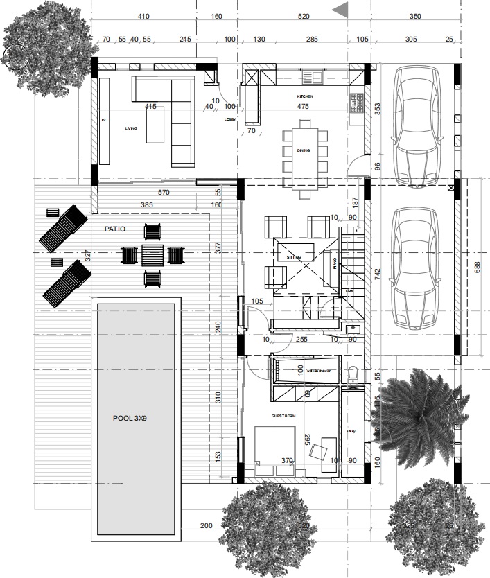 户型:独栋别墅,三房两厅三卫